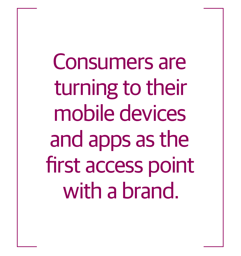 For many people, interacting with a brand often begins on a mobile device. Mobile devices and apps increasingly allow consumers to carry out numerous tasks such as booking a flight or hotel room, checking balances, sending email, or interacting with a customer service agent over video chat.