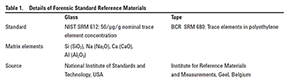 Generally, the ICP-MS is optimized by tuning the system during continuous ablation of a suitable SRM; examples of reference materials for glass and tape are given in Table 1. The Agilent ICP-MS can be optimized automatically using the AutoTune function of the Agilent ChemStation software. Often, tuning parameters for LA analysis are similar to those used for solution analysis. Tune parameters can be saved in a separate file for recall at a later date. If a SRM is available for the matrix being analyzed, it can be used to generate semiquantitative response factors which are automatically stored in the ChemStation software. The sample can then be analyzed using a matrix element as the internal standard (IS). If an SRM is analyzed, the concentration of the IS is given and quantification is straightforward. However, for unknown samples, typical IS examples include the use of 13C in polymer analysis and minor matrix isotopes in materials such as ceramics, stainless steel, and borosilicate glass, where the stoichiometry of the sample is known. While it is ideal to match the matrix of the standard to the sample, good semiquantitative data can be obtained for a wide range of matrices using a single set of response factors. This is because of the uniform response of the 7500 Series ICP-MS across the mass range, and the fine aerosol generated by the UV laser, which is more completely decomposed in the plasma, reducing matrix effects.