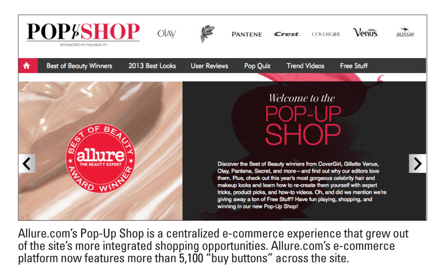Another editorially-driven concept spun out of the Allure Best of Beauty Awards—a print franchise, and a seal of approval, since 1996 that recognizes standout beauty products—which became the Pop-Up Shop. The concept ties together e-commerce, community, brand sponsorships and a deeper integration with the Quidsi/Soap.com partnership.