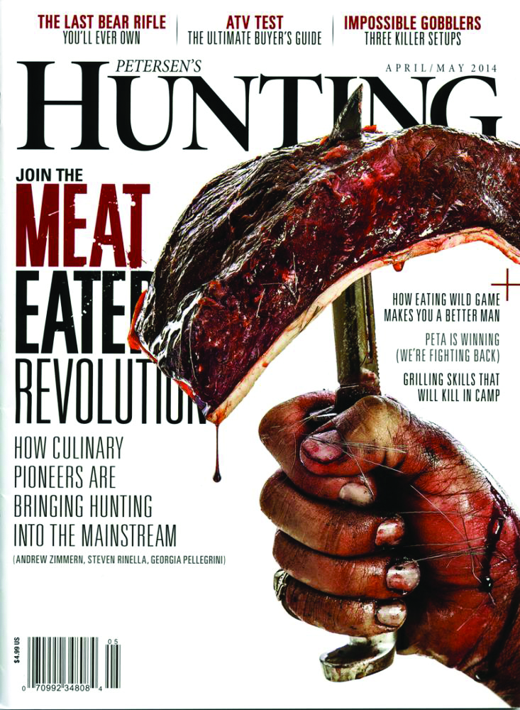 Petersen’s Hunting’s April/May cover may not be the timeliest, nor the best executed cover this year, but it is an outstanding case study in how to get a reader’s attention.