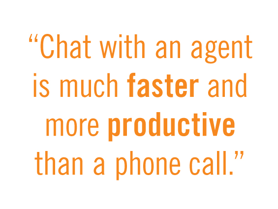 “Chat with an agent is much faster and much more productive than a phone call,” he adds. “The agent can push content directly to you, which cannot be done over the phone.”