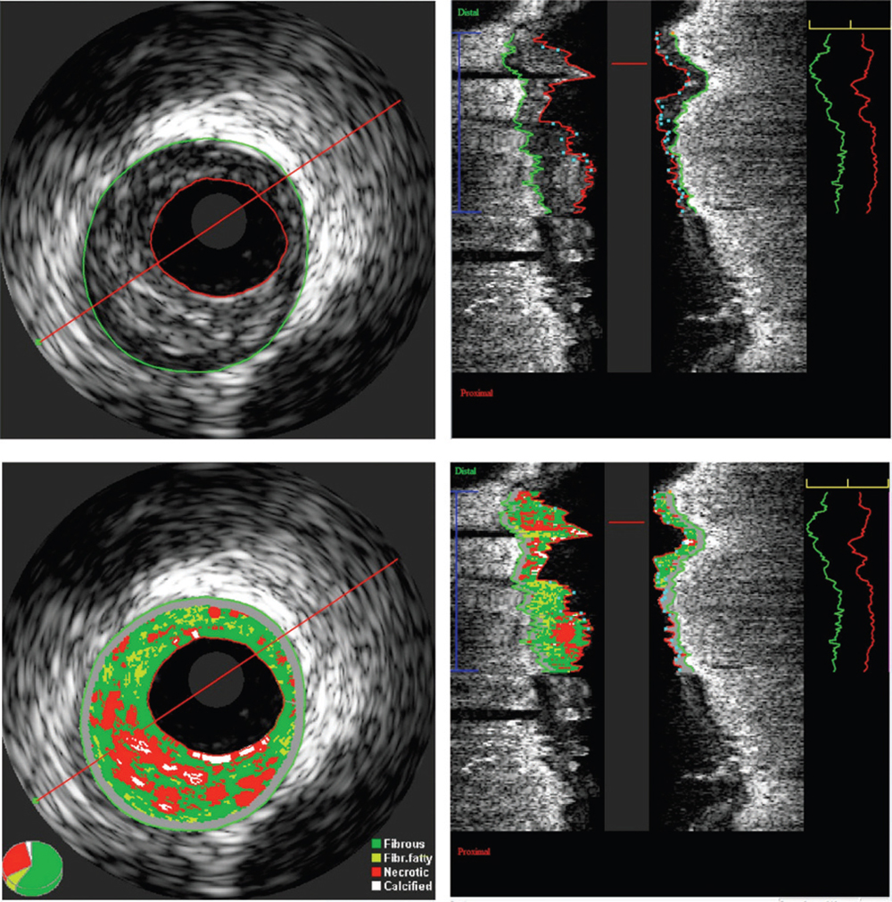 - Pu J, Mintz GS, Brilakis ES, et al. In vivo characterization of coronary plaques: novel findings from comparing greyscale and virtual histology intravascular ultrasound and near-infrared spectroscopy. Eur Heart J. 2012;33:372-383.