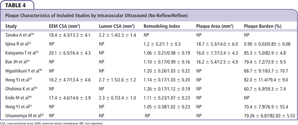 The meta-analysis showed the no-reflow group had a significantly higher absolute volume of fibrofatty plaque … compared with the normal reflow group.