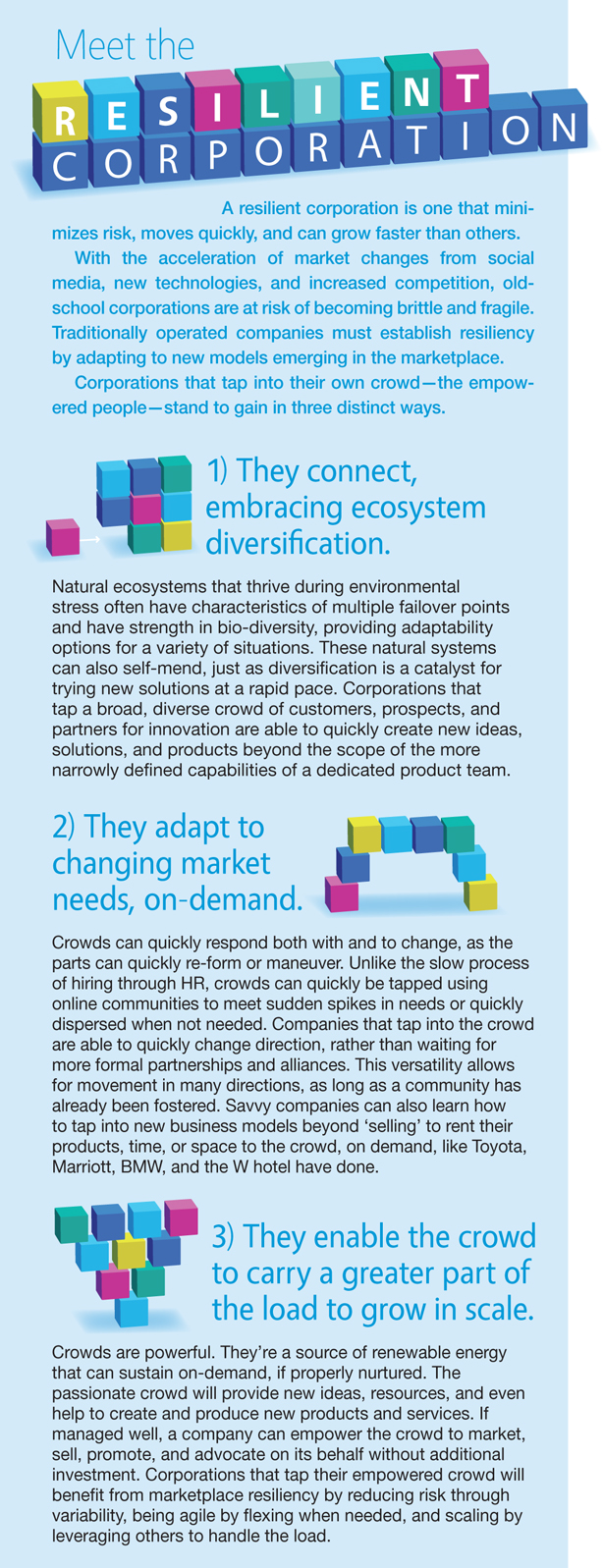 Savvy corporations that want to benefit from this massive economic revolution will collaborate with these empowered people, and, in return, create resiliency within their corporation (see sidebar). Make no doubt about it, this is a business opportunity. But if ignored, this is a threat that could unravel corporations.
