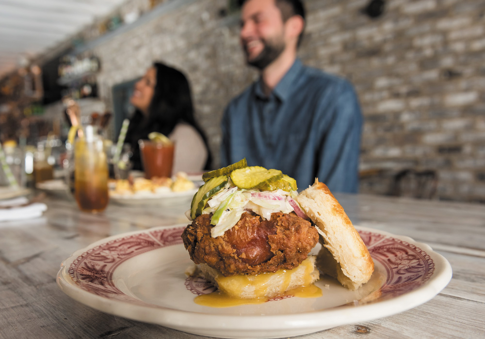 The Carolina-inspired, crispy fried chicken sandwich is a popular pick at Haberdish in Charlotte.
