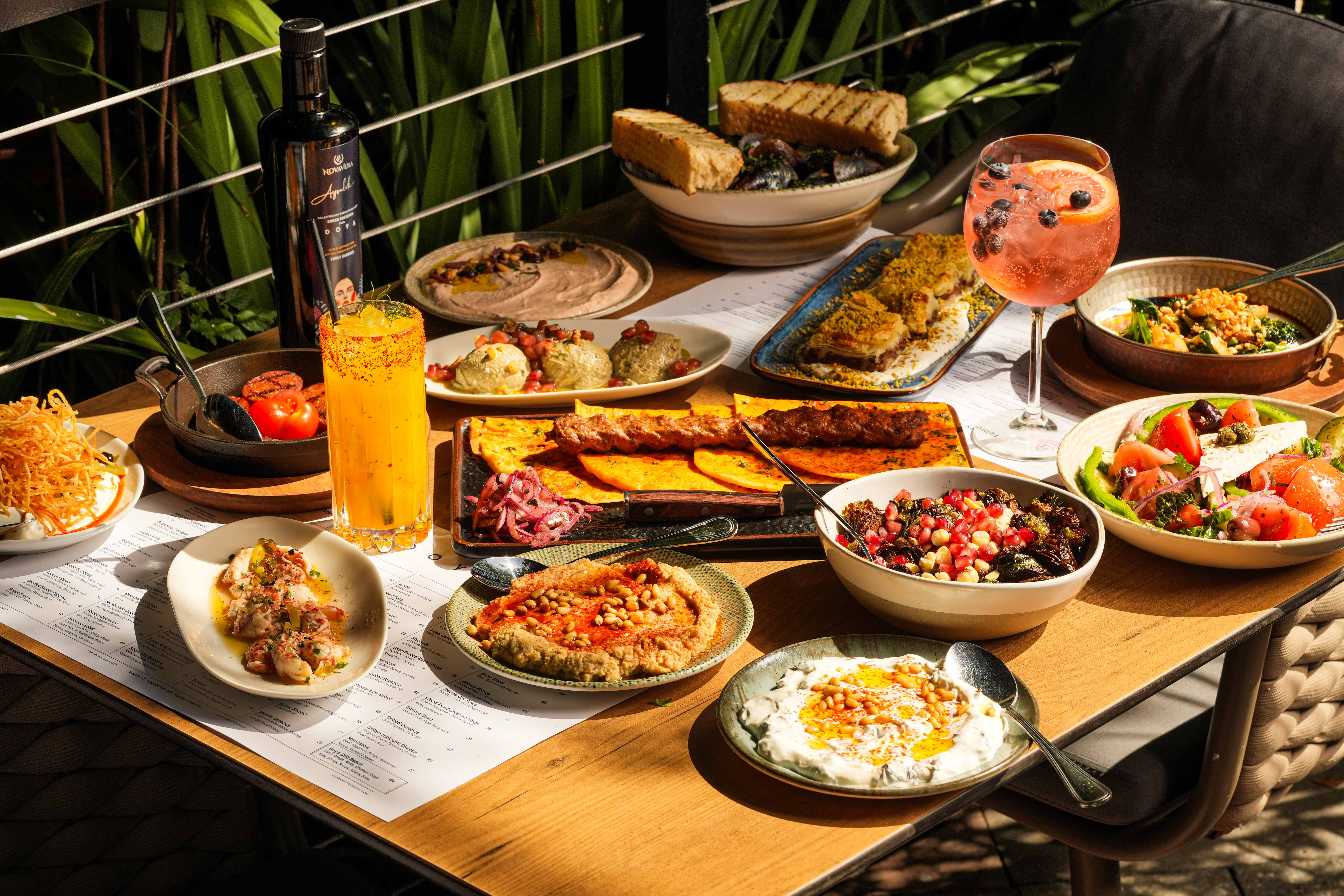 A spread of the modern Aegean meze plates served at Doya, Wynwood.