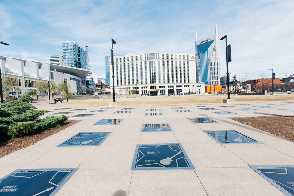 Music City Walk of Fame honors industry legends at the front of Omni Hotel, Nashville.