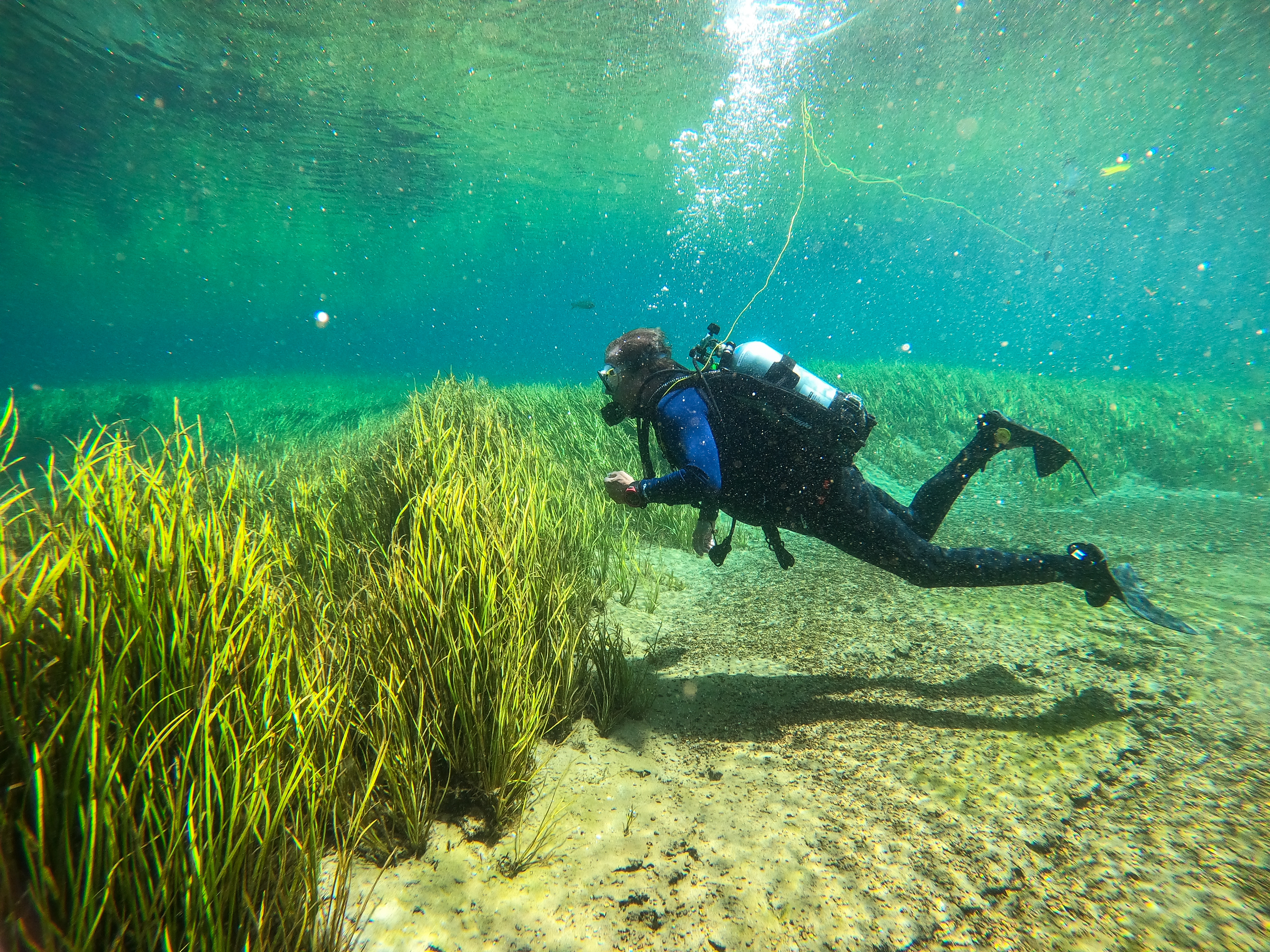 Scuba diver swimming at Devil's Den cave