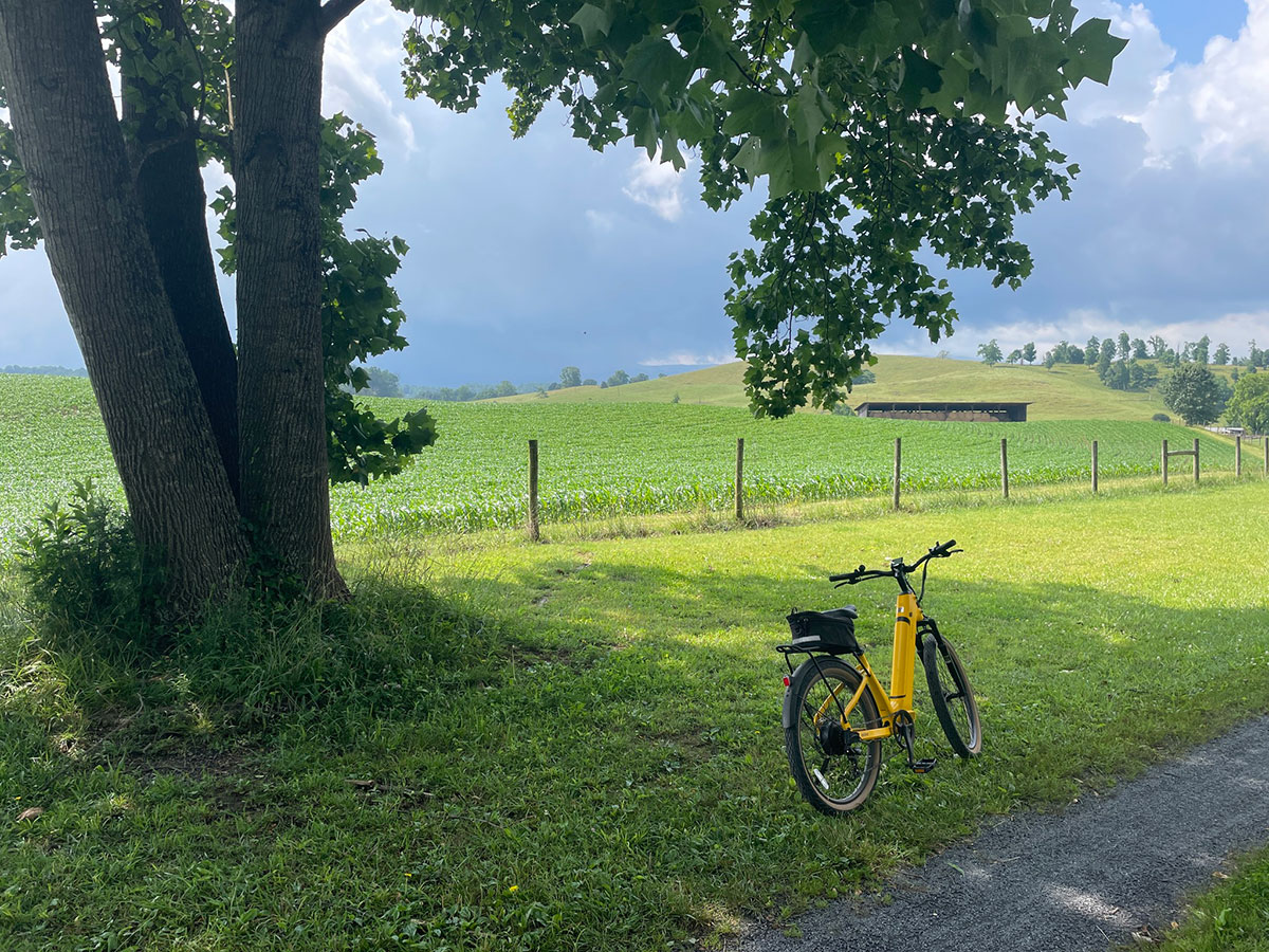 For a shorter route, consider riding from Abingdon or Damascus to the midpoint of Alvarado Station, where you can visit the old train station, equipped with restrooms and an outpost that offers ice cream, snacks, rain ponchos and Virginia Creeper Trail merch. Here, you can enjoy a picnic with views of the river and surrounding natural setting. Most shuttle services offer a ride back from Alvarado Station if you don’t want to do the full 17 miles. As of December 2024, ebikes are now permitted on the Virginia Creeper Trail and available at most local outfitters, making the ride even easier.