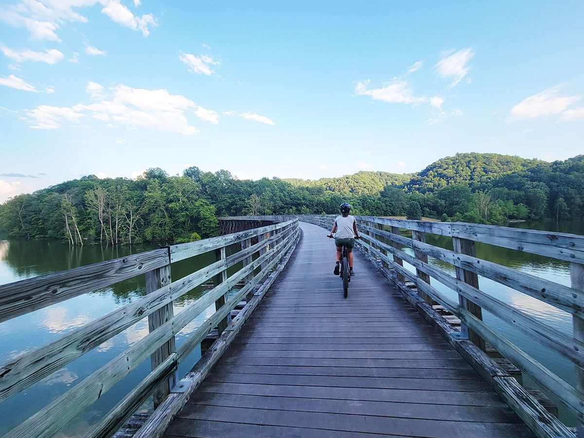 Visitors enjoy beautiful scenery when traveling the Virginia Creeper Trail.