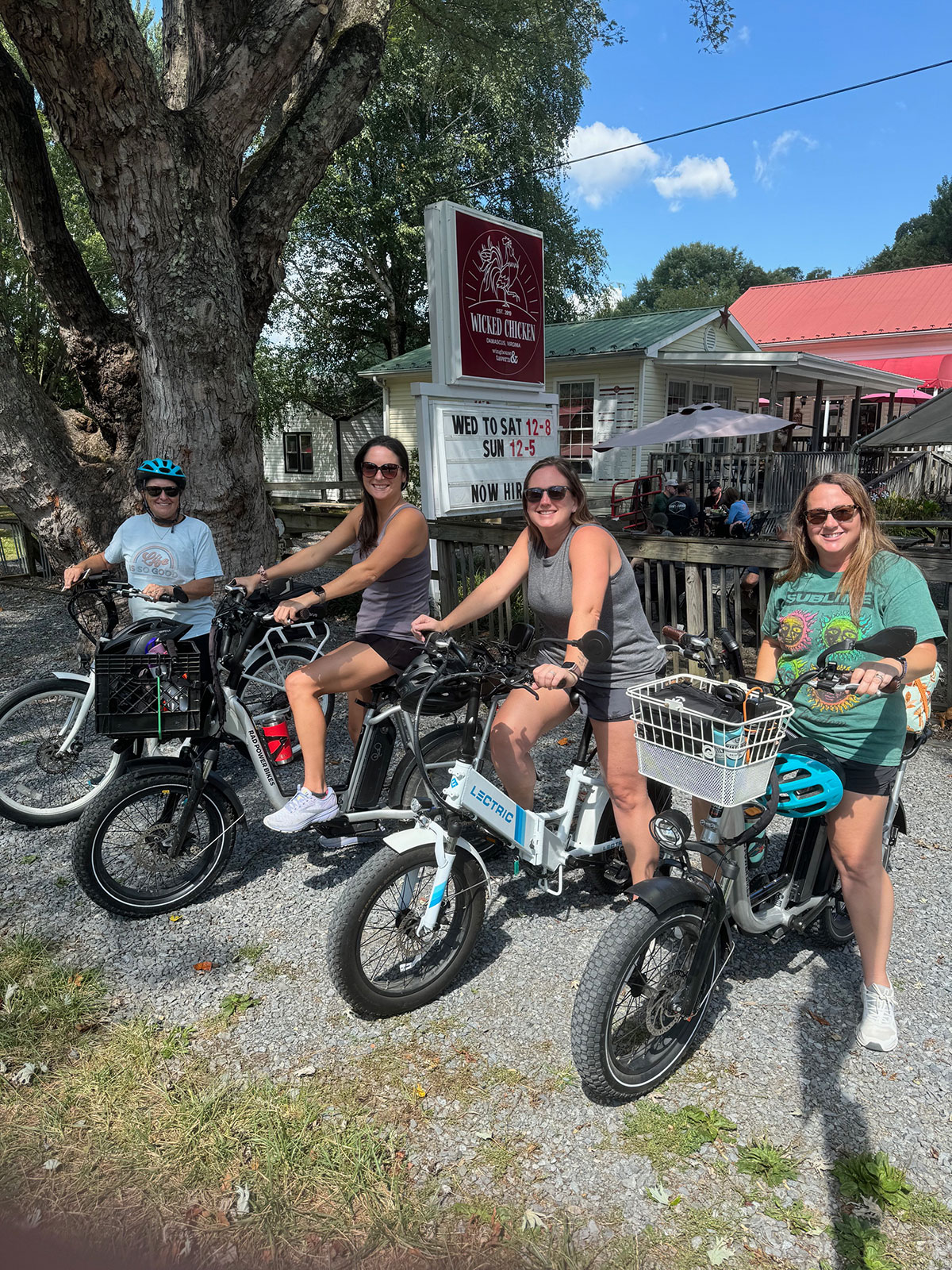 Friends preparing to ride their ebikes on the Virginia Creeper Trail.