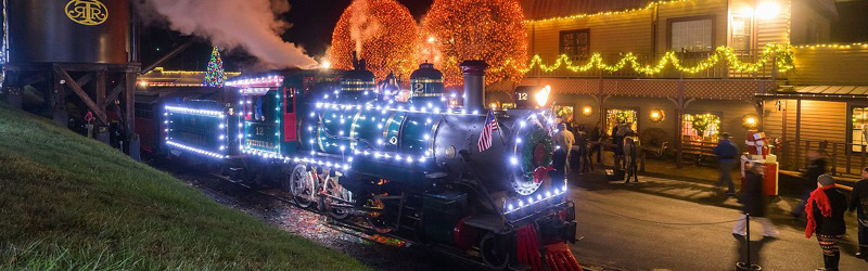 COVER IMAGE: Tweetsie Railroad train decoRAted for Tweetsie Christmas®, Blowing Rock, N.C. CREDIT: TWEETSIE RAILROAD