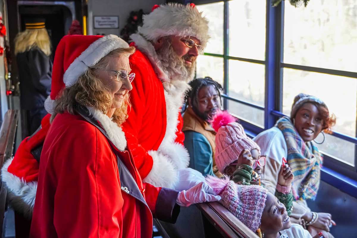 Mr. and Mrs. Clause pose for photos on the Blue Ridge Scenic Railway Holiday Express.