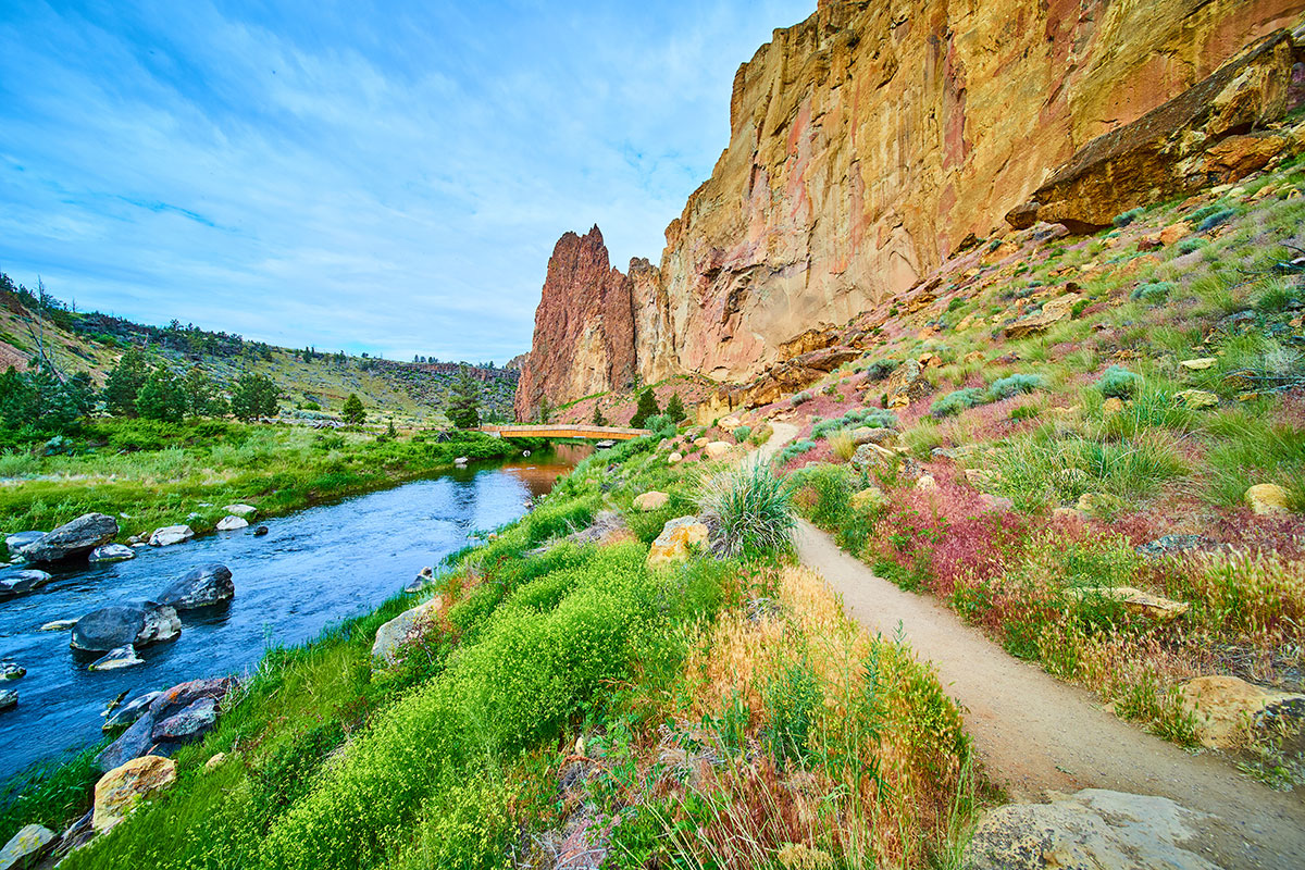 Drive another 14 miles for an afternoon hike at Smith Rock State Park with its soaring 600-foot tuff and basalt cliffs framing the Crooked River. For those in your group who may not be up for the hiking challenge, the view from the parking lot is rewarding as well.
