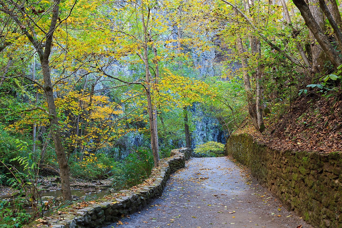 Cedar Creek Trail leads visitors under Natural Bridge.
