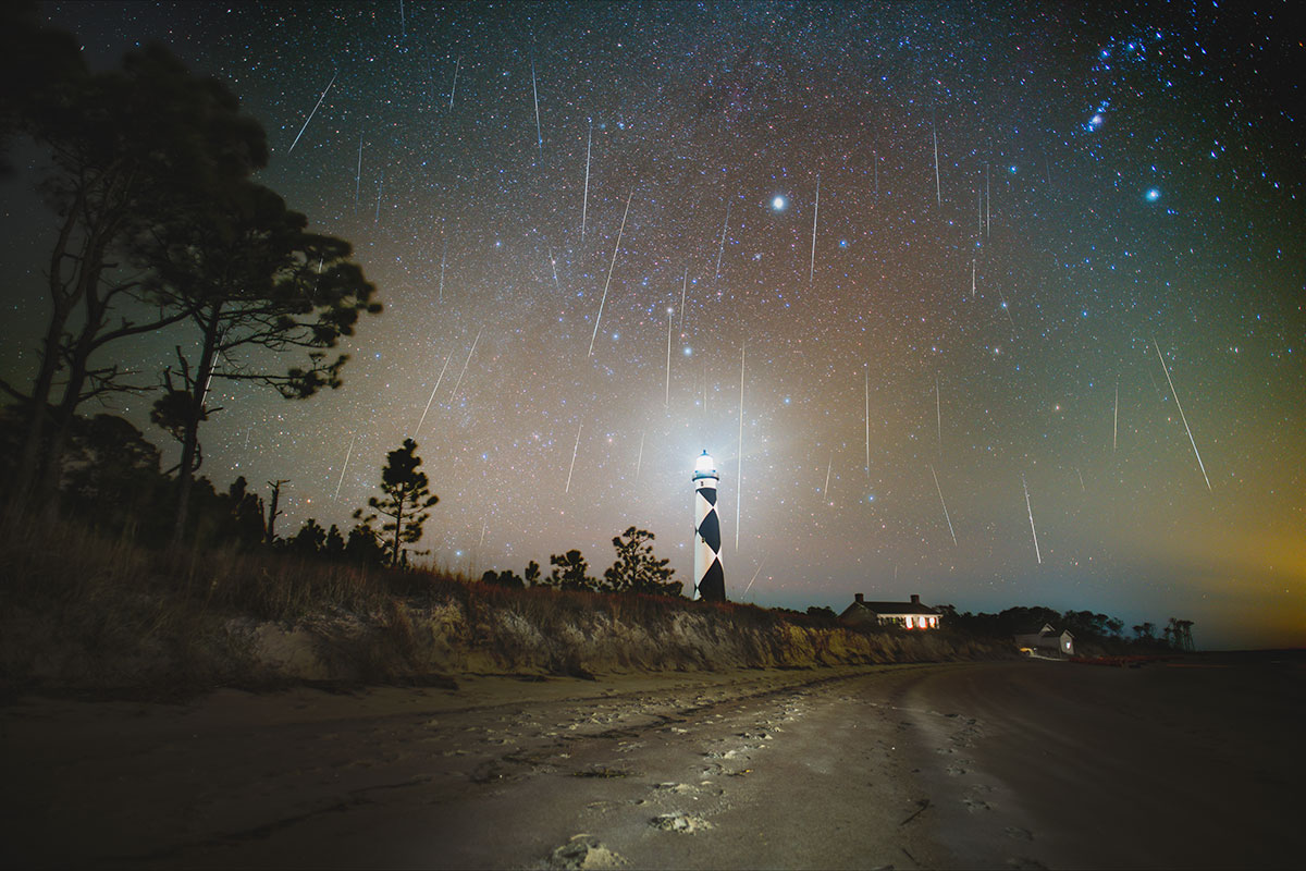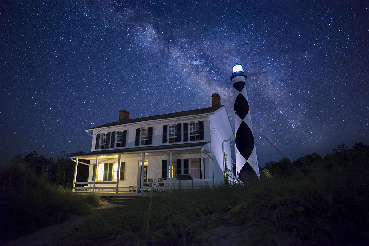 Nighttime stars at Cape Lookout Lighthouse, North Carolina