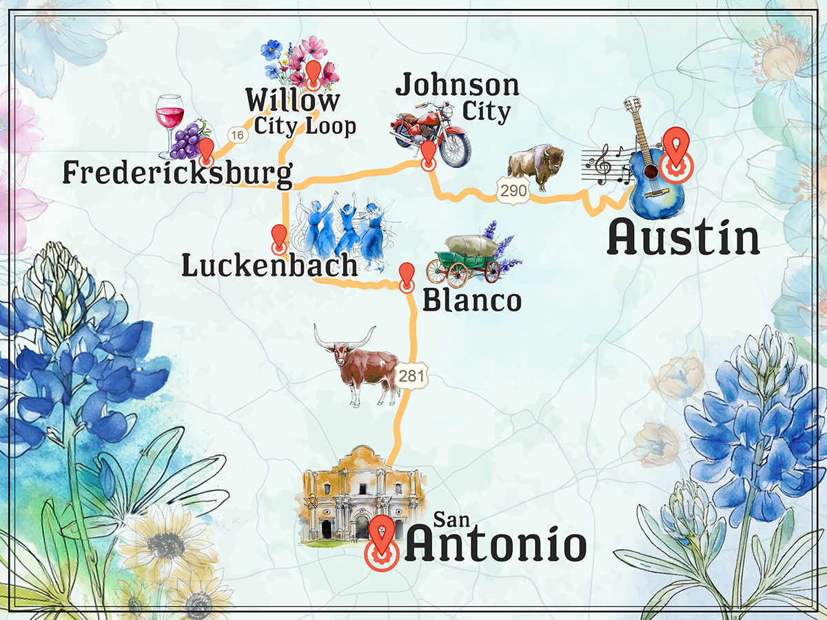 Hit the road this spring for a scenic journey from Austin’s bluebonnet fields to the vibrant spectacle of Fiesta San Antonio.