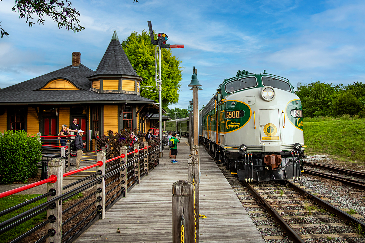 Listed on the National Register of Historic Places, this site that is open year-round features pieces of historic rolling stock for visitors to tour, while also offering rides on a 1924 dining car as part of the Lake Rion Dinner Tour, a 1954 passenger car during a narrated tour, or a vintage caboose or an open-air car operating on one of the museum’s seasonal train rides.