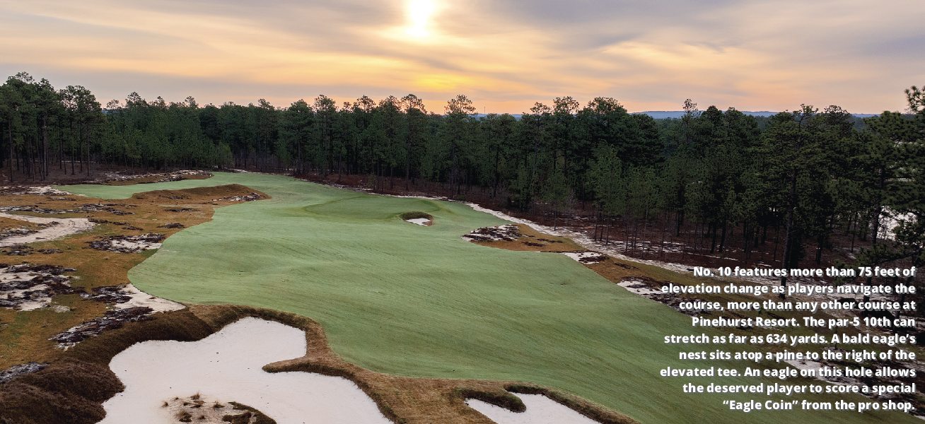 When No. 11 is completed, it will push Pinehurst’s total to a whopping 207 holes, more than any other U.S. resort. The demand is there, as golfers continue to flock to this mecca of golf in North Carolina. In addition to Pinehurst No. 2, No. 4, and now No. 10, the other nearby venues, Pine Needles, Mid Pines, Southern Pines and Tobacco Road, are all considered among the top 100 public courses in the country.
