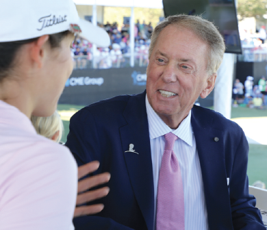 As Duffy tells it: “Jay calls Mike Whan [on speaker phone], and he says, I’ve got to tell you something. We’re at Cypress with Tim because I just became commissioner, and President Bush and another guy you might know. Mike Whan goes, Who’s that? They go Terry Duffy. Mike Whan goes, I’m on my way. You’re not taking him from me. I kept saying to Jay, what’s this CDC Mexican Open, because they were looking for a new sponsor for that big tournament in Mexico. I was thinking, Geez, my clients might really enjoy Mexico. It was priceless. That’s how we did it. But they knew – listen, I believe Tim and Jay to this day understand the value of having a strong LPGA. They know how important it is to the game of golf. So, we had a little fun with Mike Whan, but there was no threat of me going there, and they want the LPGA to have more people to help them be successful.”