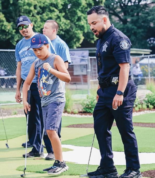 Youth weren’t the only ones on-site whose passion for the game grew throughout the summer. The CPD officers in attendance visibly took a more active role in the golf elements in each event.