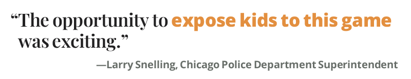 “Not only are you being exposed to a new sport, a new game, you’re being exposed to our officers – to sit down, talk with them, team up with them, have mentorship,” Snelling said in an interview with CBS Chicago (scan QR code right to view story). “Understand that they’re human and that we can all talk, we can all get along, we can partner. And that these o icers care.”