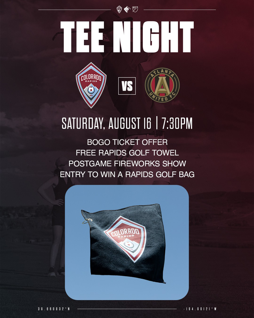 As a valued member, you’re invited to a special night with the Colorado Rapids on Friday, August 16. Enjoy this exclusive benefit just for members and junior golfers:
