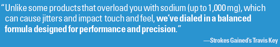 Key: Golf demands a unique balance of endurance, focus and consistency over a four-to-six hour stretch, often in the heat. Most hydration brands are built for short bursts of high-intensity exercise. Strokes Gained is designed for the sustained, strategic nature of golf. The flavor, electrolyte balance and convenience (small stick packs that fit easily in a golf bag) were all created with golfers in mind.