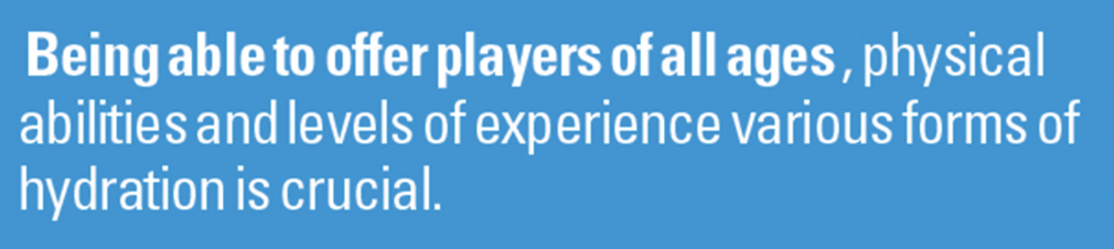 Key: We suggest keeping hydration readily available as a point of sale in the golf shop, at the starter tee and in beverage carts. We equip our clubhouse partners with resources they can share with their members and guests. This promotes well-being and a sense of caring from the club to the consumer.
