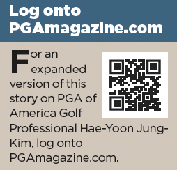 “I’ve always had a drive to be the best I can be in whatever I do,” says Hae-Yoon, who credits PGA of America Professionals Gary Newman, Glenn Deck and Robert Ford for much of her success. “I knew it would take 10 years (to become a PGA Master Professional) and that I needed to become a Certified Professional first. So, I committed to each step, one at a time. Earning my Master Professional designation was an incredible journey.” —Roger Graves