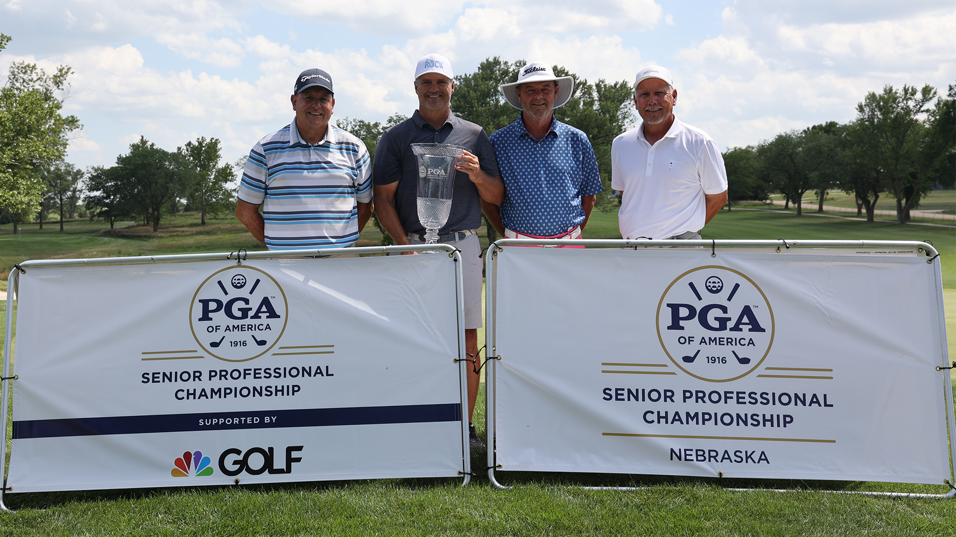 PGA Life Member Chris Wiemers claimed his first Nebraska Senior PGA Professional Championship title, joining the elite group of Members to have won both the Section and Senior titles. He finished with a 36-hole total of 5-under to win by seven shots. Four players finished tied at 2-over, forcing a sudden-death playoff for the remaining three spots into the national championship. On the first playoff hole, all four players hit the green in regulation. Tom Hearn was first to putt — his 20-footer missed by inches, and he tapped in for par. The next three players all converted birdies, sealing their tickets. Joining Wiemers in representing the Nebraska PGA at the 2025 Senior PGA Professional Championship at PGA Golf Club in Port St. Lucie, FL, will be PGA Life Member Bryan Hughett, Mike Antonio, PGA of Happy Hollow Club, and J.D. Brake, PGA of ArborLinks. Jim White, PGA MP, a past national champion, remains exempt and will also be in the field. We would like to thank Head Professional Noah Briley and Superintendent Andy Hamilton as well as the entire Professional staff at Beatrice Country Club for hosting us. We would also like to thank the Golf Channel, Rolex, the PGA Tour and PXG for helping make this event possible.