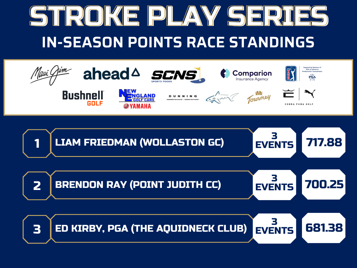 The New England PGA has seen record participation numbers in the opening three 2025 Stroke Play Series Events. The Stroke Play Series is a season-long points race based upon finishes in the five Stroke Play Series events and Chapter Championships. The top 54 point-earners will qualify for the Stroke Play Series Finals at Winchester Country Club on October 1, 2025.