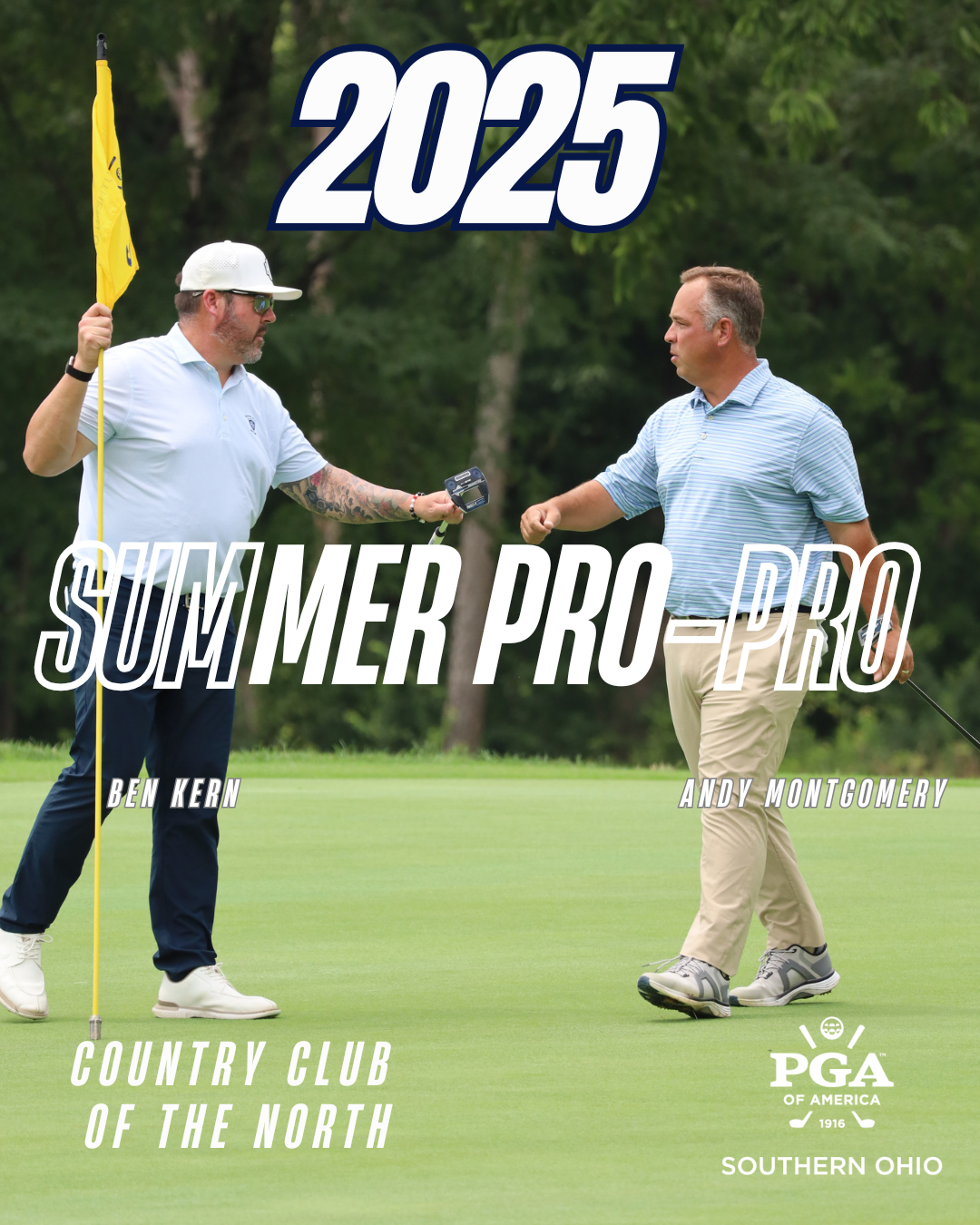 Andy Montgomery practically bounced onto the ninth green at Country Club of the North, Monday afternoon. That confident stride took some of the mystery out of his subsequent birdie putt because any man who walks up to a green like that knows his next putt is going in the hole. And it did, along with pretty much every putt he and his partner Ben Kern looked at during the 2025 SOPGA Summer Pro-Pro.