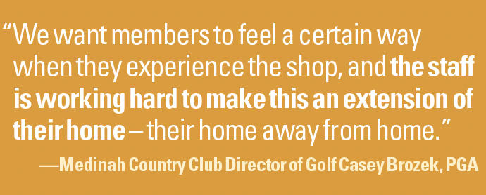 “We’ve got members who are walking in today and you see them look at the product, lighting and the fixtures, and they really appreciate not only being back in the shop but having a space you might consider more worthy of Medinah,” he says. “We want members to feel a certain way when they experience the shop, and the staff is working hard to make this an extension of their home – their home away from home.”