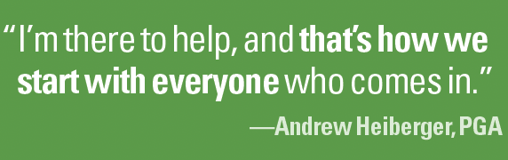 Whether it’s a simple lie adjustment, an annual equipment checkup or even co-surfing with a beginning golfer client on eBay to pick the right pre-owned gear, Heiberger’s goal is to build long-term game improvement relationships.