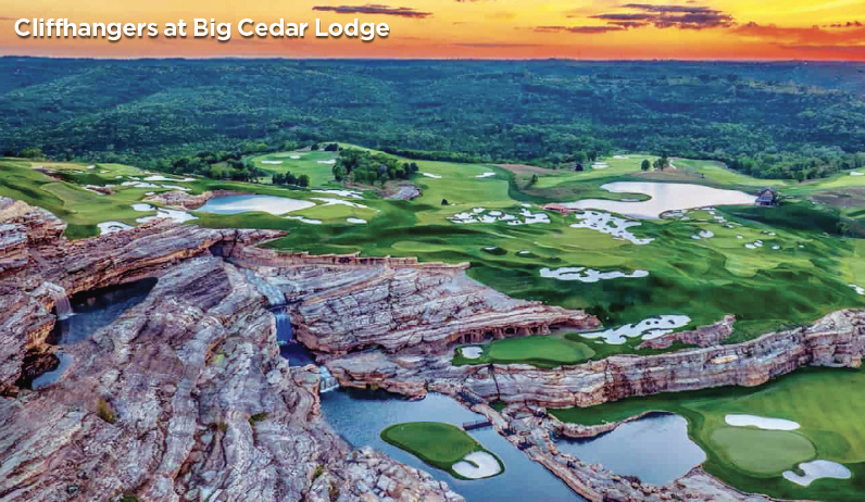 Big Cedar Lodge in Ridgedale opened its new 18-hole par-3 course, Cliffhangers. It’s billed as “the most dramatic par-3 golf course in the world” by the resort. Designed by owner Johnny Morris and his son, John Paul, Cliffhangers is adjacent to the resort’s Payne’s Valley Course on a limestone cliff that was originally meant to be a practice area.