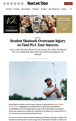 Another winning PGA of America Golf Professional was recently profiled in Philadelphia’s MainLine Today publication. Braden Shattuck, the 2023 PGA Professional Championship winner and Low Club Professional at the 2024 PGA Championship, talks about the serious automobile crash in 2019 that altered the course of his golf career, as well as the experience of playing in multiple PGA Championships. The PGA of America Director of Instruction at Rolling Green Golf Club also talks about his life as a golf coach in the story, which was published just before he won the 2025 Philadelphia PGA Professional Championship to get a shot at a spot in the 2026 PGA Championship field.