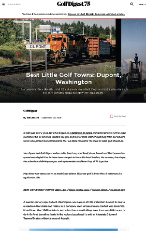 Golf Digest ran a series of stories on America’s “Best Little Golf Towns,” with one focusing on Dupont, Washington. The story traces how golf has helped elevate the military area thanks to The Home Course, which has hosted several high-level events over the past two decades. The story quotes PGA of America General Manager Justin Gravatt on the importance of growing the game and hosting events to boost the profile of the course and Dupont itself. The story also discusses the impact of PGA HOPE programming, which is a mainstay at the town’s two military courses – the Army course Eagles Pride and the Air Force’s Whispering Firs – and how it serves to both grow the game and provide Veterans with a chance to enjoy relaxing moments on the courses.