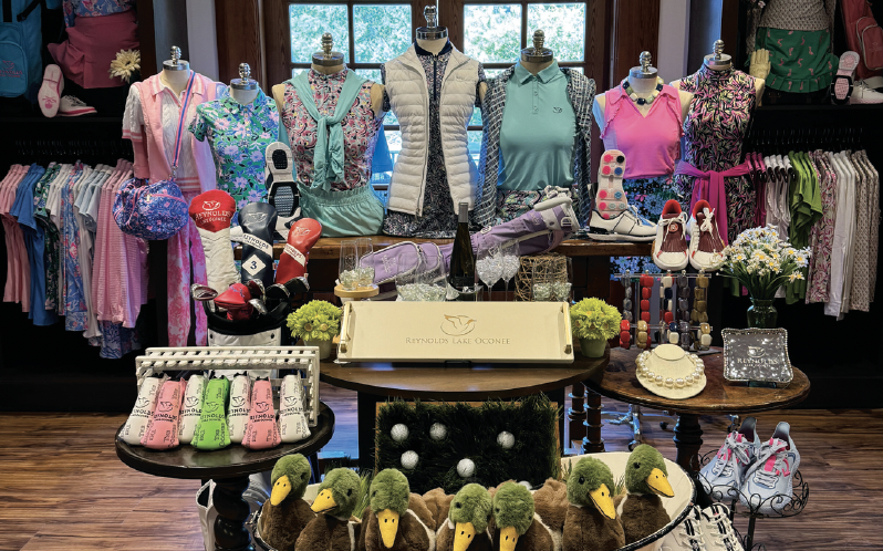 “A lot of the non-logoed merchandise is purchased by golfers who come into the shop, people who have a second home at Reynolds or friends who want to buy something for a resident,” she says. “A lot of times, members will let their friends know when they get something in the golf shop, so word of mouth is very important.”
