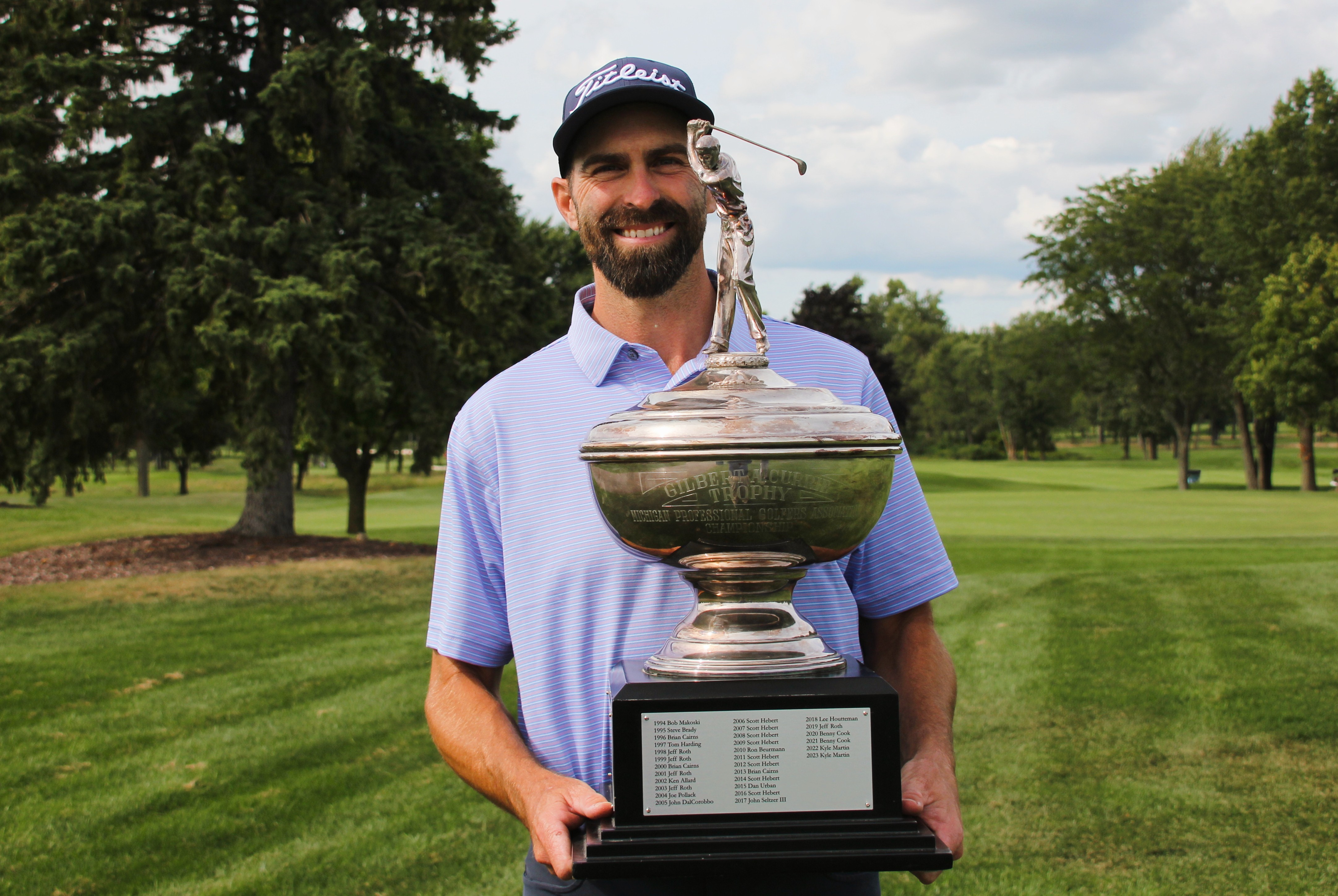 Patrick Wilkes-Krier Wins Michigan PGA Professional Championship Patrick Wilkes-Krier, the proprietor of Kendall Golf Academy in Ypsilanti, birdied the par 5 final hole with a 76-yard pitch shot approach and two-foot tap-in to win the 104th Michigan PGA Professional Championship at Walnut Creek Country Club. It was the first individual professional win for Wilkes-Krier, an Ann Arbor native and resident, since 2012 during his eight years of mini-tour golf following college golf at Ball State University in Indiana. Wilkes-Krier started the final round with a three-shot lead and maintained it until a double-bogey at No. 10, followed by a bogey at 11. That opened the door for other players, but he birdied four of his final seven holes. He took home the $7,500 first-place check and will have his name added to the historic Gilbert A. Currie Trophy. In addition, he will be awarded an exemption into the PGA Tour’s Rocket Classic next summer at Detroit Golf Club, and he secured a spot in the PGA Professional National Championship at Bandon Dunes Resort in Oregon next spring. “There’s so many levels to this,” he said in reaction to his win. “I’m so excited to play at Bandon Dunes – that’s the main goal when you come here, just to get a shot. I want to play in that PGA Professional Championship so badly and that venue is going to be so awesome.” Those joining Wilkes-Krier at Branon Dunes are Scott Hebert from Traverse City Golf & Country Club, Jeff Roth from BOYNE Golf Academy, Ryan Lenahan from Walnut Creek Country Club, Adam Schumacher from Point O’Woods Golf & Country Club, Tim Pearce from Birmingham Country Club, Matt Thompson from Hillsdale College, Brian Cairns from Fox Hills Learning Center, Kyle Martin from Lochmoor Club, Josh Fyer from Franklin Hills Country Club, Kosta Ramierz from Kosta Ramirez Golf Academy, and Scott Brotebeck from Walnut Creek Country Club. We would like to thank Walnut Creek Country Club for hosting this year’s major, our presenting sponsors: Club Car, Corebridge Financial, and Rolex, our supporting partners: Gallagher, the Golf Channel and PGA TOUR, and our supporting sponsors: Titleist/Footjoy, Callaway Golf, Nike and TaylorMade. |