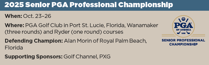 He will see some familiar faces as he pursues his second Senior PGA Professional Championship, including a leaderboard of former champions, at PGA Golf Club in Port St. Lucie.