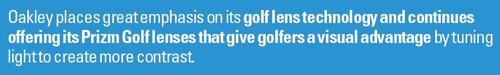 In addition, Oakley places great emphasis on its golf lens technology and continues offering its Prizm Golf lenses that give golfers a visual advantage by tuning light to create more contrast. Using various dyes, the brand’s technology removes a lot of the color green that golfers see through the lenses – allowing them to see yellows, browns and reds easier on the course.