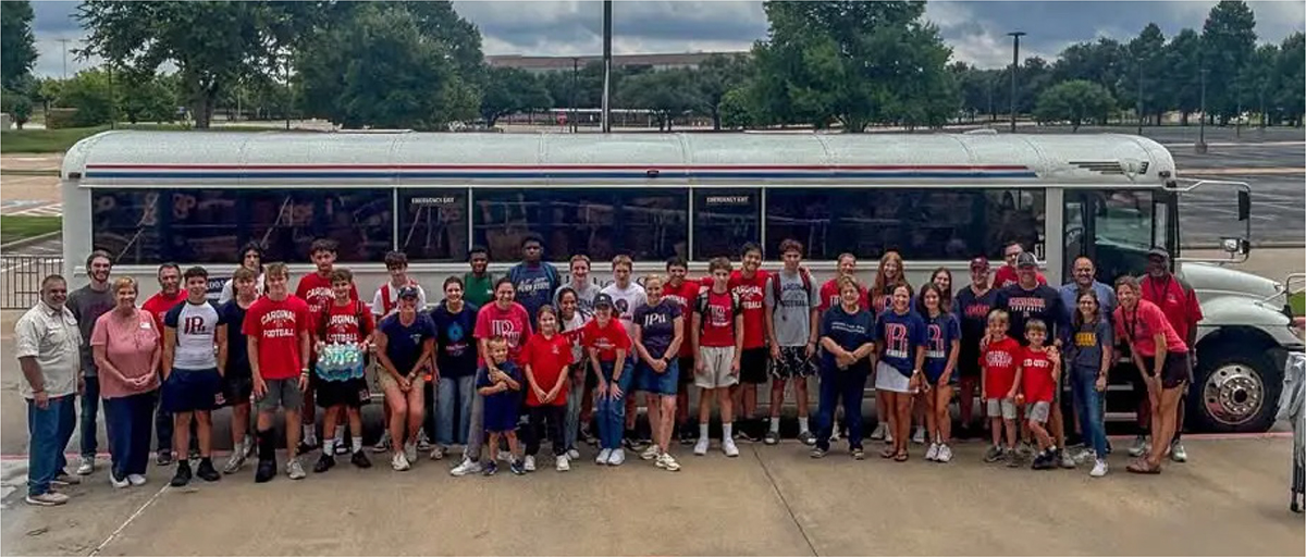 Notre Dame School in Kerrville, TX, was the drop-off point for essential supplies for those affected by the summer flooding in Texas. John Paul II High School, Bishop Lynch, Bishop Dunne, and Highlands School packed school buses with essentials such as non-perishable foods, hygiene items, cleaning supplies, baby necessities, paper products, and even pet supplies. The relief drive was tagged as “Fill the Bus for Kerr County” and was a huge success, where every donor and donation reinforced what it means to live out our Catholic values of compassion, service, and community.