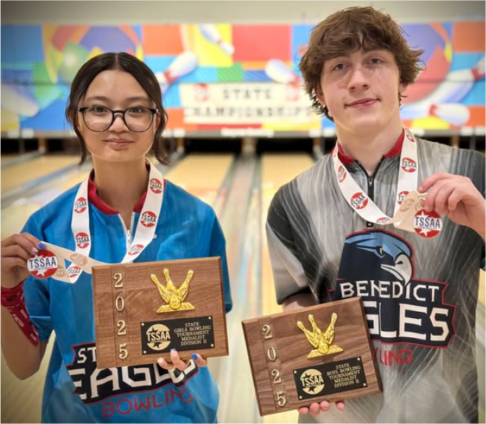 Julia Casama, from St. Benedict at Auburndale, was among the selected athletes from around the country nominated for Youth Athlete of the Year through Colossal, a nationally registered professional fundraiser that inspires people to advocate for themselves and those in need through online competitions, such as Youth Athlete of the Year, in partnership with Sports Illustrated. Julia just missed the top spot, coming in third, but remains a fierce competitor as a member of St. Benedict’s Bowling Team. She averaged a DII-best 176 last season and was chosen as Girl Bowler of the Year by The Commercial Appeal and won the Tennessee Secondary School Athletic Association (TSSAA) State Individual Championship. Schoolmate Jackson Roberts won first place in the Boys DII Individual Championships, making them both the best bowlers in the state in their division. The Daily Memphian recognized the St. Benedict team with the Tennessee Sportswriters Association (TSWA) All-State Bowling Team for Division II.