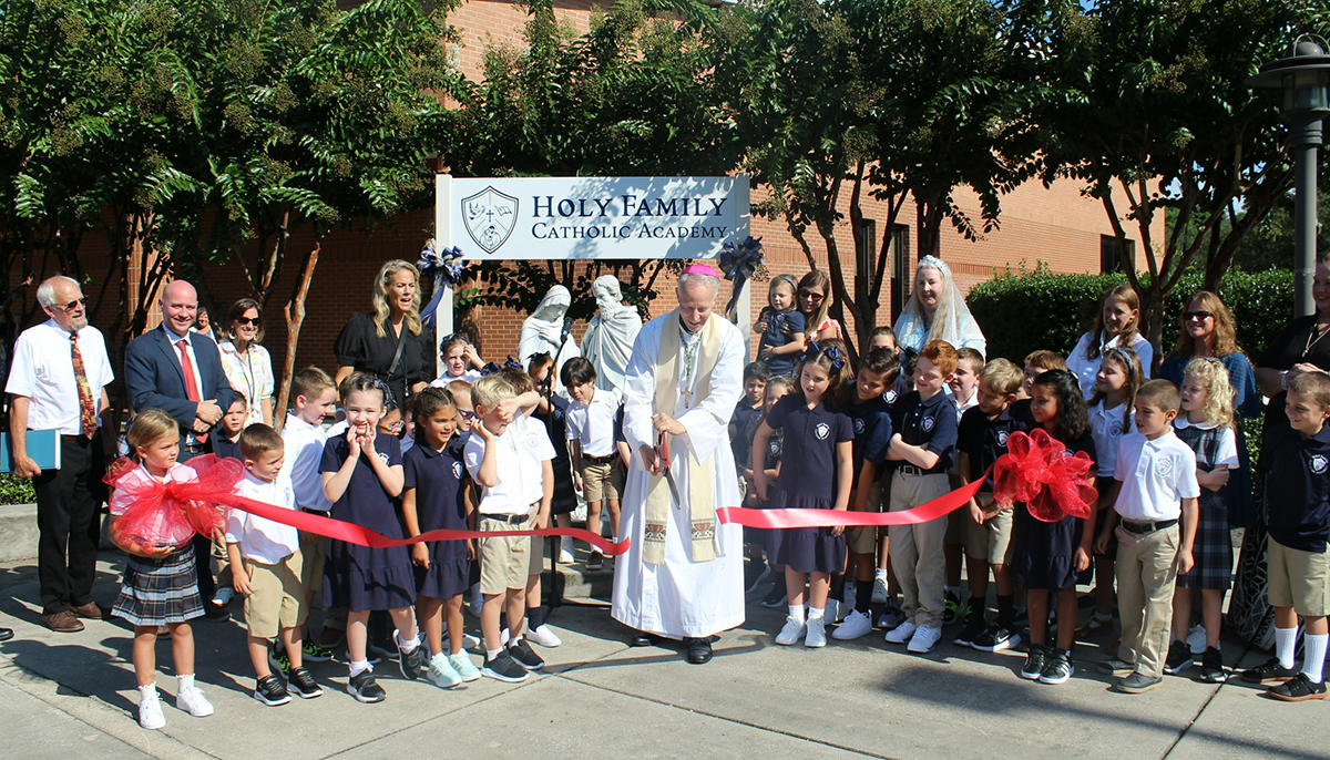 There is joy in Niceville, FL, these days! The town and the Diocese of Pensacola-Tallahassee are celebrating the opening of a new Catholic school, Holy Family Catholic Academy. The new K-3 school opening was celebrated with superintendent Michael Juhas, founding principal Felisha Carnley, the Bishop of Pensacola- Tallahassee, William A. Wack, CSC, and the local community. Bishop Wack invited all the families from the surrounding parishes to consider the opportunity to enroll their children at Holy Family. “Enrolling your child in Catholic school is not just an educational decision—it’s a lifelong investment in their spiritual and moral foundation,” he explained.