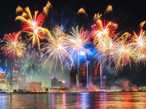 (Detroit) Witness one of the country's largest fireworks displays over the Detroit River in the downtown area for a dazzling pyrotechnic show. Pre-fireworks activities include live music performances, games and food trucks along the riverfront promenade.