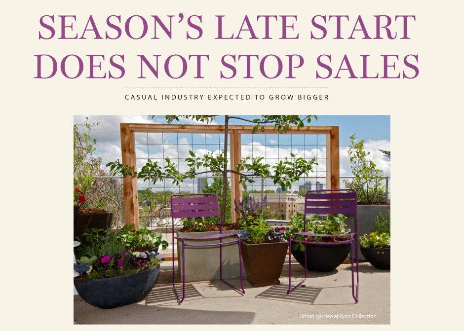 Although most casual furnishings retailers and manufacturers agreed the 2014 casual season got off to a slower than normal start, the delay did not necessarily result in decreased sales. Some said their sales continued to be as good as normal while others reported double-digit sales increases.
