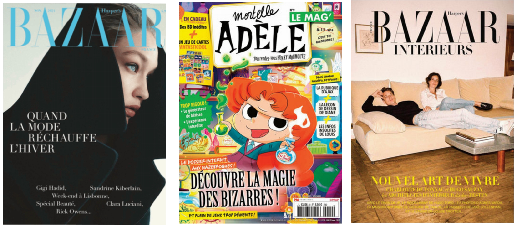 C.L. On suit beaucoup ce que fait Hachette livre : beaucoup de succès en librairie peuvent nous donner des idées en lancements de magazine. Cela permet de déceler des tendances : ce qui fonctionne en livres peut être déclinée en presse, et vice-versa. Exemple Mortelle Adèle est devenu le premier magazine pour enfants vendu dans les kiosques (environ 50 000 exemplaires), car nous avons vu que c’était un succès énorme en librairie. Nous avons pu développer le projet avec l’auteur, Antoine Dole. Donc, s’il y a des phénomènes de ce type en librairie, chez Hachette livre, nous pourrons les répliquer en presse.
