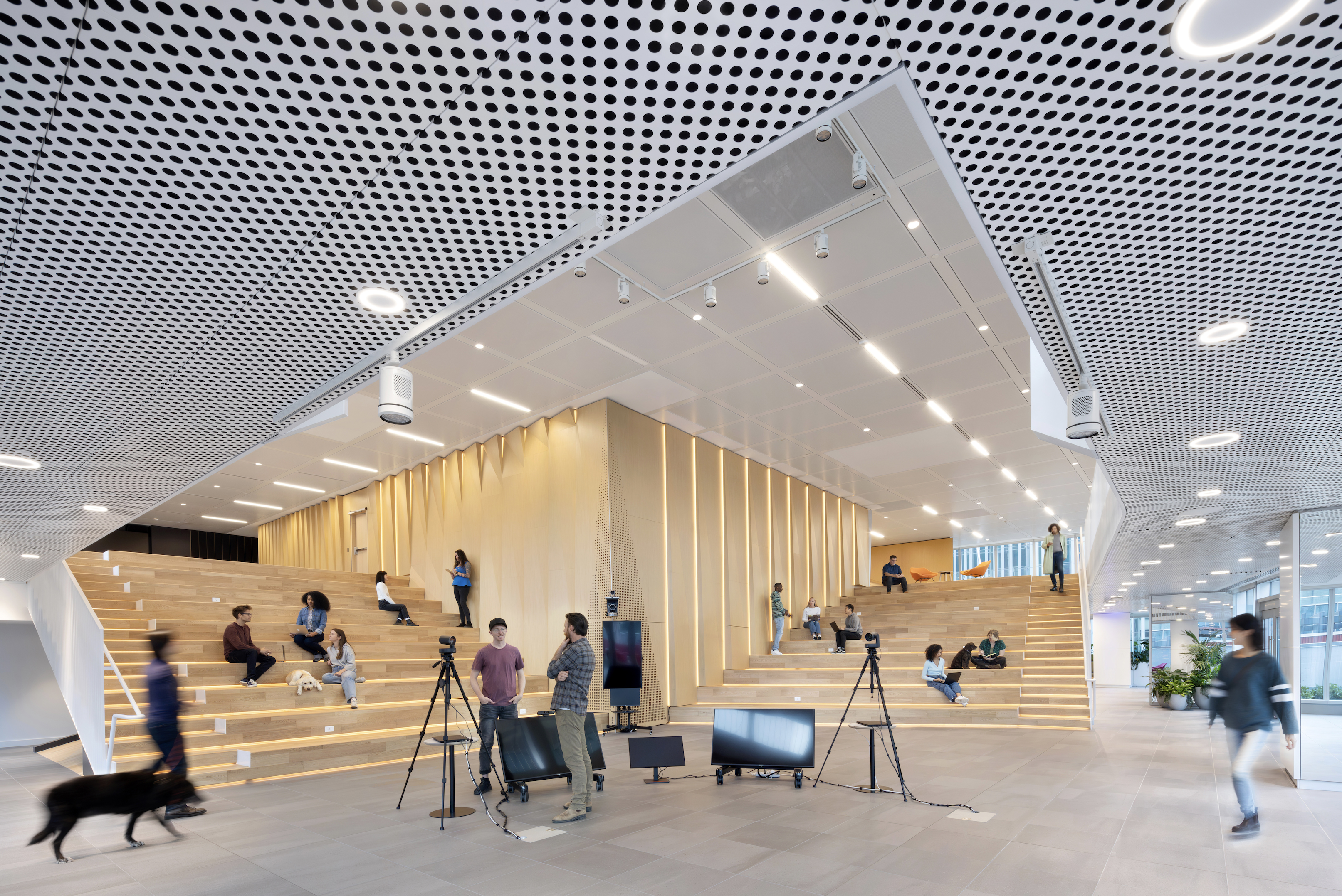 The 27 distinct luminaire types were applied across 118,000 sq ft and five floors to provide both coverage and flexibility. Each area—from focused workstations to the expansive presentation atrium—has lighting tailored to its function and mood.
