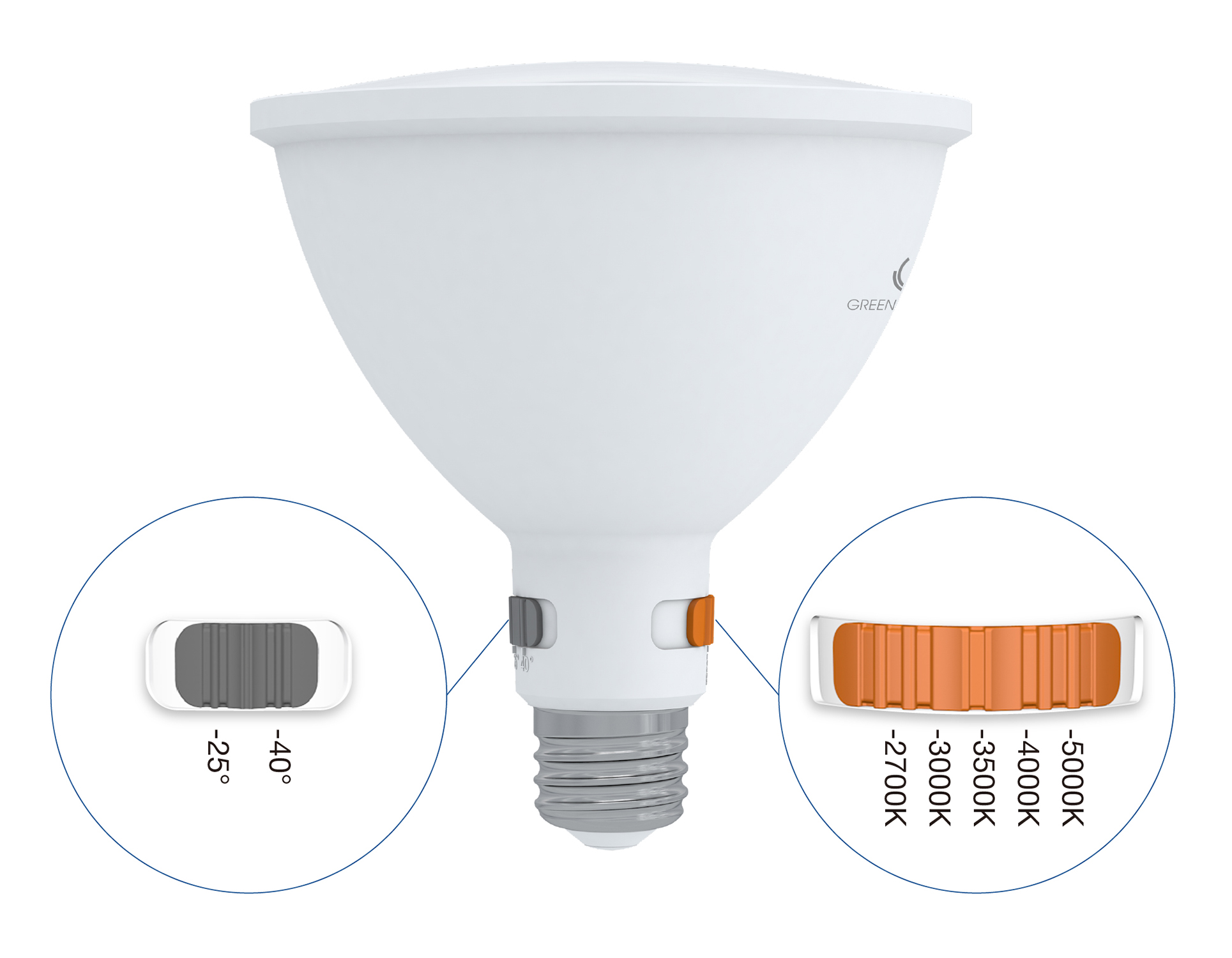 GREEN CREATIVE’s AdjustaPAR PAR38 HO is a line extension to the family of products accepted in 2023 for an increased life rating of L70, 50,000 hours. The lamps may be operated through a range of 120 to 277 volts, have two field-selectable beam angles of 25 or 40 deg, a selectable CCT range from 2700K to 5000K, and 92 CRI.